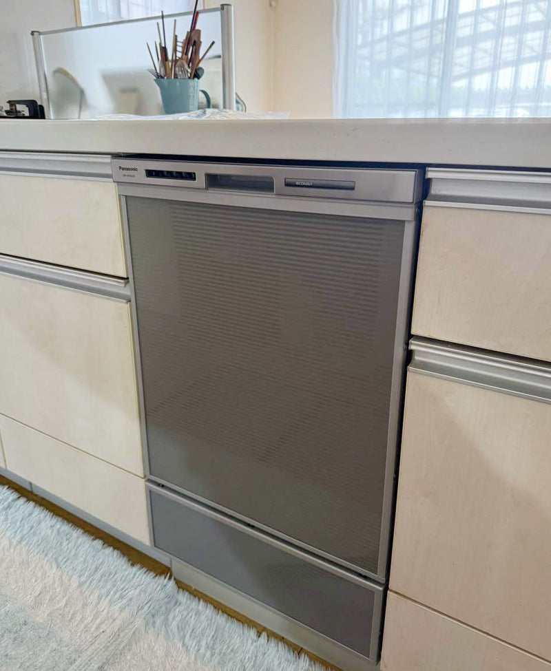 National製のS46EW2(スライドオープン・ディープタイプ・ドアパネル型)の食洗機から、PanasonicのNP-45MD9S(スライドオープン・ディープタイプ・ドアパネル型)の機種へ交換を行いました。M9シリーズは「3Dプラネットアーム」を用いた高い洗浄力と「AIエコナビ」「ムービングラックプラス」等の高い利便性を併せ持つ機種です。「AIエコナビ」は食器の汚れ具合+食器量+室内温度に合わせて、最適な洗い方を自動的に判断し、節水・省エネを実現します。