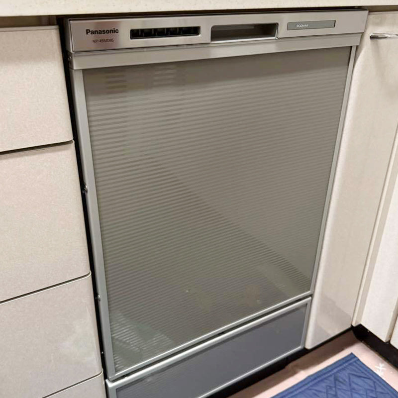 Panasonic製のNP-45MD5S(スライドオープン・ディープタイプ・ドアパネル型)の食洗機から、PanasonicのNP-45MD9S(スライドオープン・ディープタイプ・ドアパネル型)の機種へ交換を行いました。ご使用の食洗機の後継機種で交換を行わせていただきました。M9シリーズは先進の洗浄力とエコ機能、庫内の利便性も兼ね備えたハイグレードタイプの機種です。AIエコナビ搭載で、食洗機内の状況に最も適した運動制御を実現します。庫内も4つのスタイルに変えることができ、ディープタイプにはちょこっとホルダー搭載されているので小物の洗い物にも便利です。