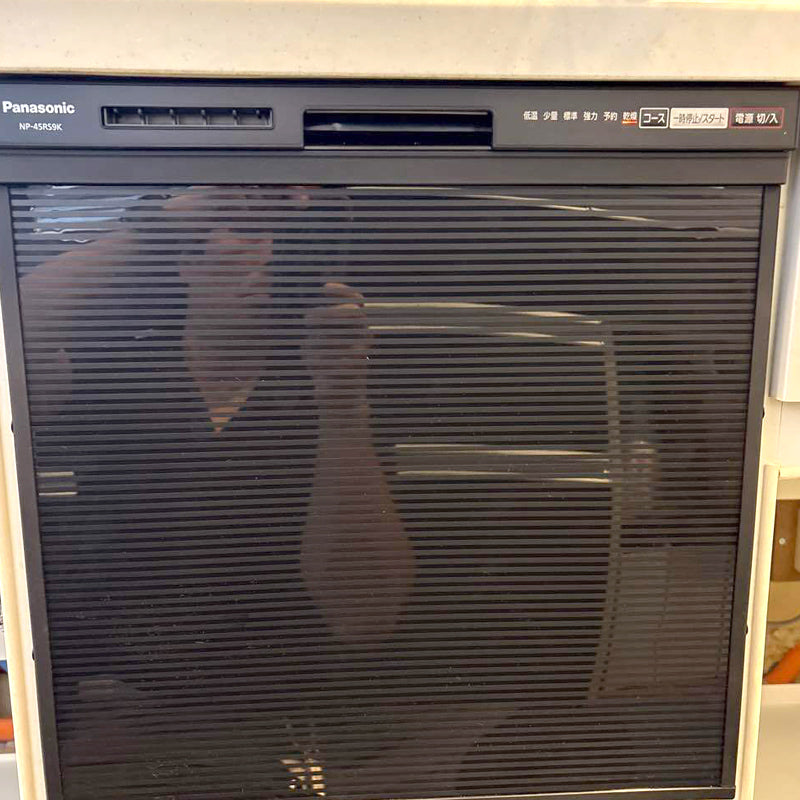 ハーマン製のFB4511P(スライドオープン・ミドルタイプ・ドアパネル型)の食洗機から、PanasonicのNP-45RS9S(スライドオープン・ミドルタイプ・ドアパネル型)の機種へ交換を行いました。正面は本体色のブラックになりました。R9シリーズは、毎日の家事をサポートする基本的な機能が搭載された食洗機です。「ストリーム除菌洗浄」は50℃以上の高圧水流により、洗浄工程でしっかりと除菌します。
