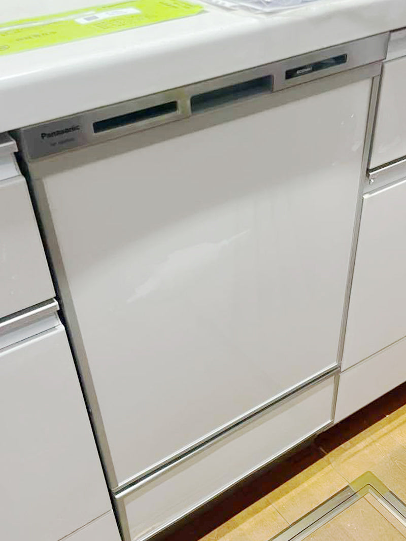 Panasonic製のNP-45VD5SJG(スライドオープン・ディープタイプ・ドアパネル型)の食洗機から、PanasonicのNP-45MD9S(スライドオープン・ディープタイプ・ドアパネル型)の機種へ交換を行いました。M9シリーズは「AIエコナビ」「ムービングラックプラス」「3Dプラネットアーム」などを搭載した、高い洗浄力と節水性が魅力の機種です。3Dプラネットアームノズルからの立体的な洗浄水の噴射で細かい汚れも逃がさず洗い落とします。正面の白色のパネルはサイズが同じため再利用させていただきました。